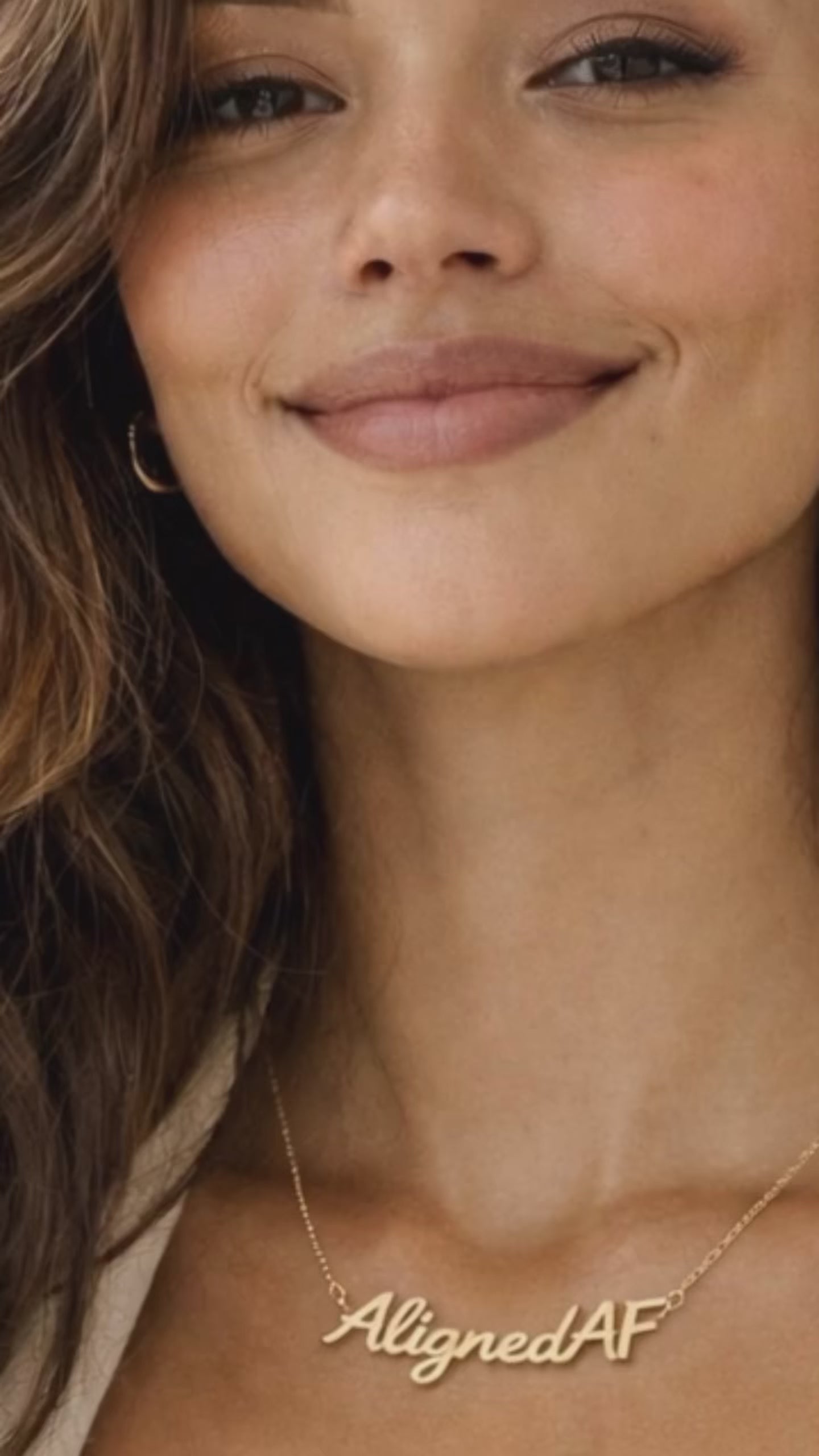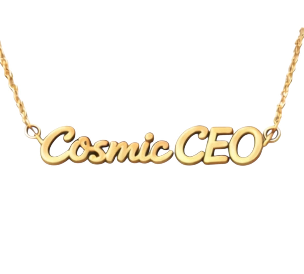 Each piece is a modern name-style necklace, crafted as a connected word pendant so the phrase flows as one continuous design. Think of it as wearable affirmation… with a wink.