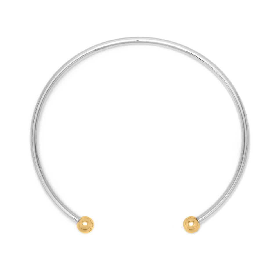 Create the ultimate two tone look with these bullring choker. Blending silver with gold or rose gold in a sleek and sassy shape. This choker necklace boast glamorous details with an everyday relaxed sensibility. Pair yours with simple attire for added polish or team it with elegant evening wear for fuss-free shine. Sterling silver with rhodium, gold vermeil or rose gold plated
