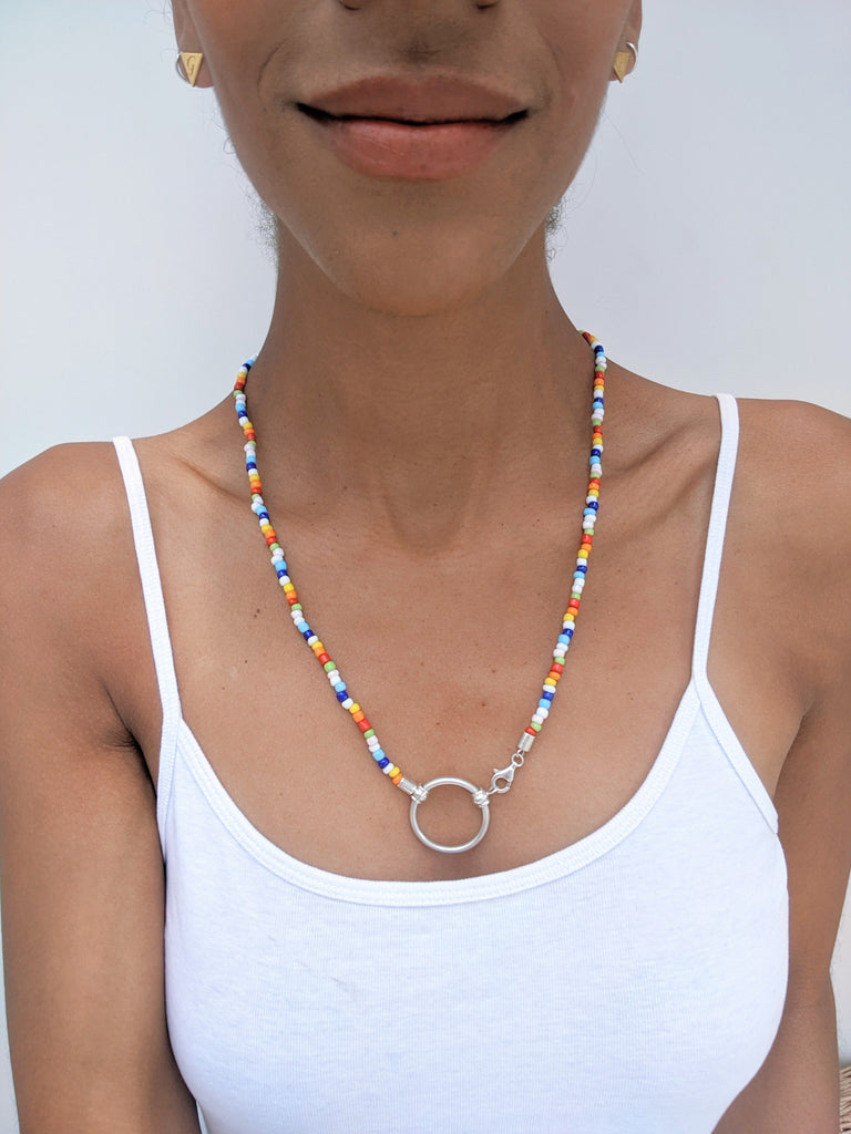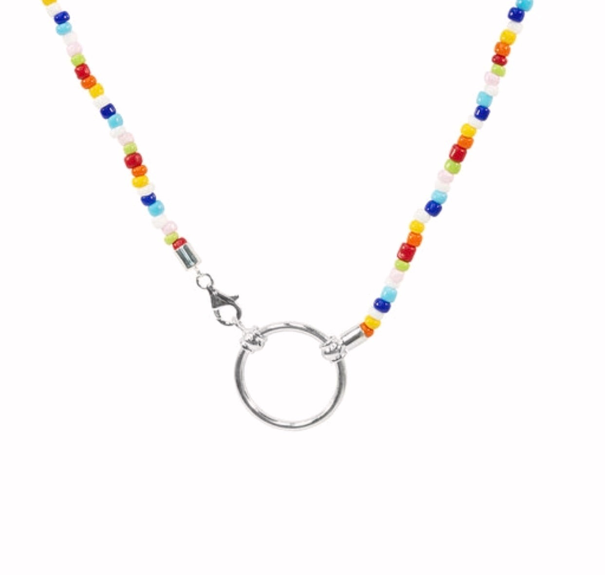 A glasses holder necklace which is a perfect combination of style and practicality! Handmade in the UK using Colourful Opaque Beads and solid recycled Sterling Silver.