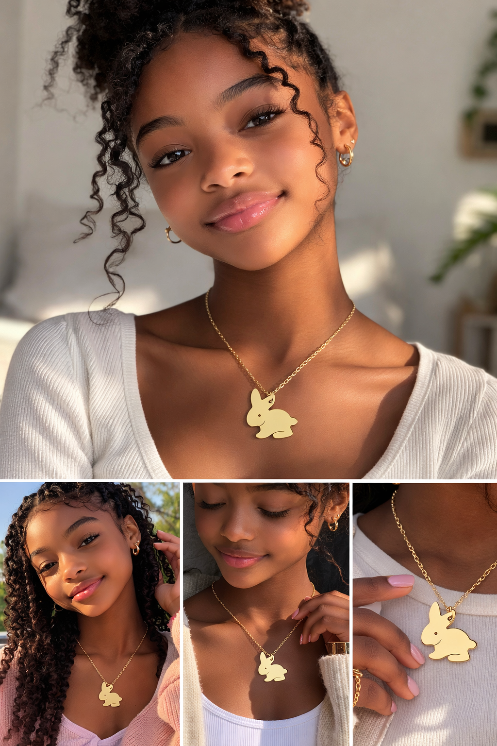 Our adorable Bunny necklace makes a perfect surprise. Inspired by the gentle spirit of the rabbit, this charming piece adds a touch of magic to any Easter outfit and becomes a keepsake she can treasure all year long.
