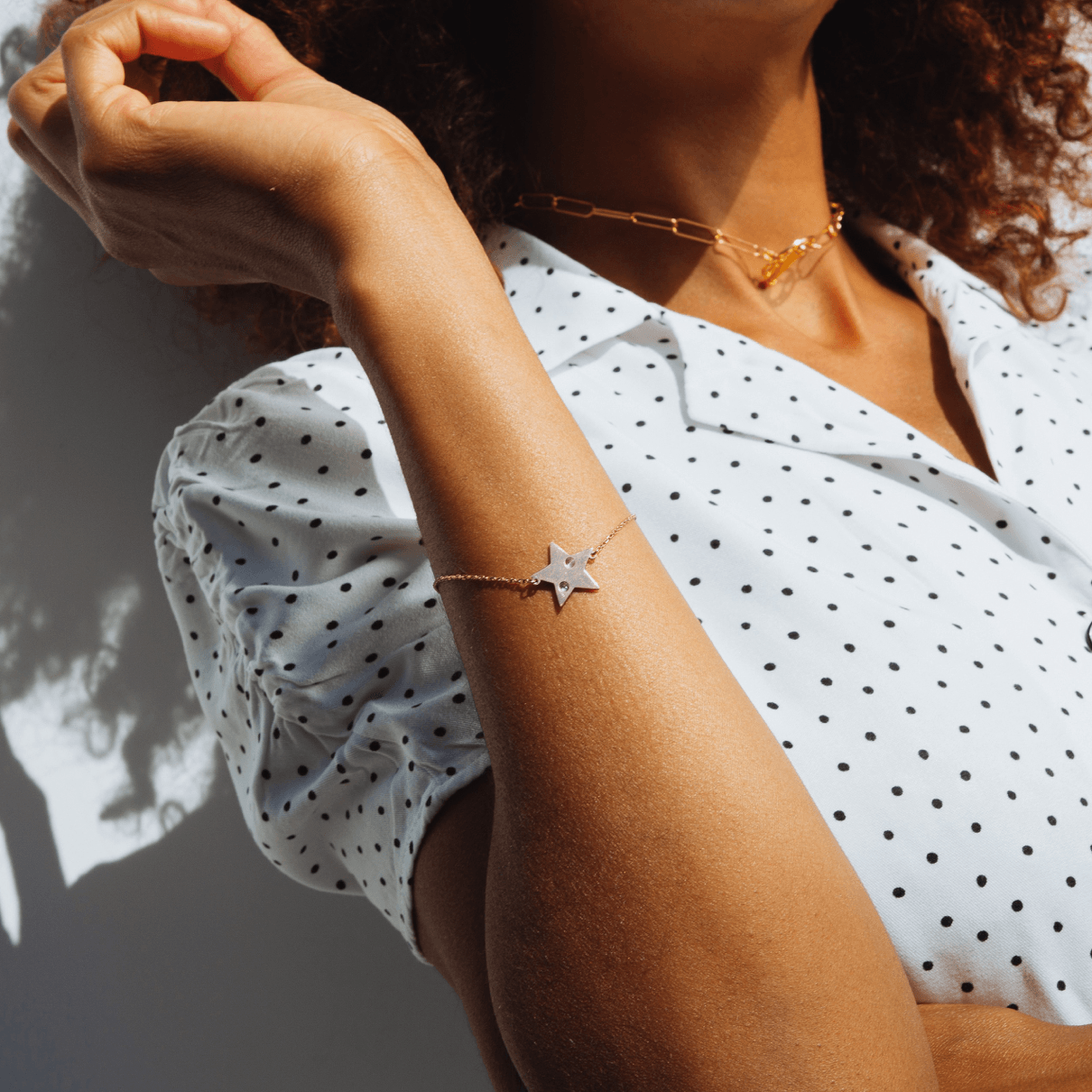 Put your zodiac constellation on this lovely star bracelet from the Georgia Jones x Anna Lou collaboration. The perfect gift idea or a great way to add a personal touch to your jewellery collection.